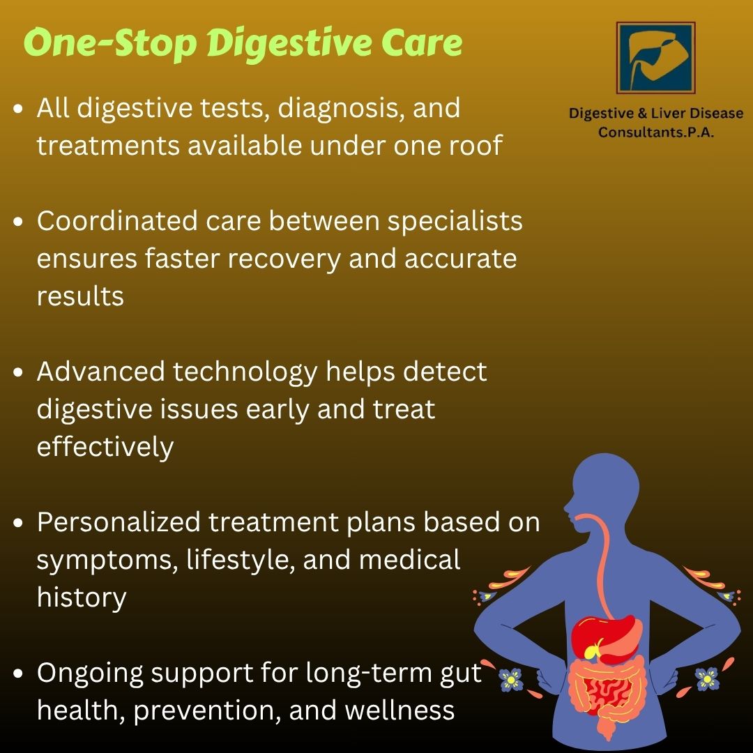 A digestive care center that offers comprehensive digestive care ensures that patients receive coordinated attention without the stress of visiting multiple facilities. At Digestive & Liver Disease Consultants, P.A., the focus is on providing complete digestive treatment through advanced technology, experienced specialists, and patient-centered care.