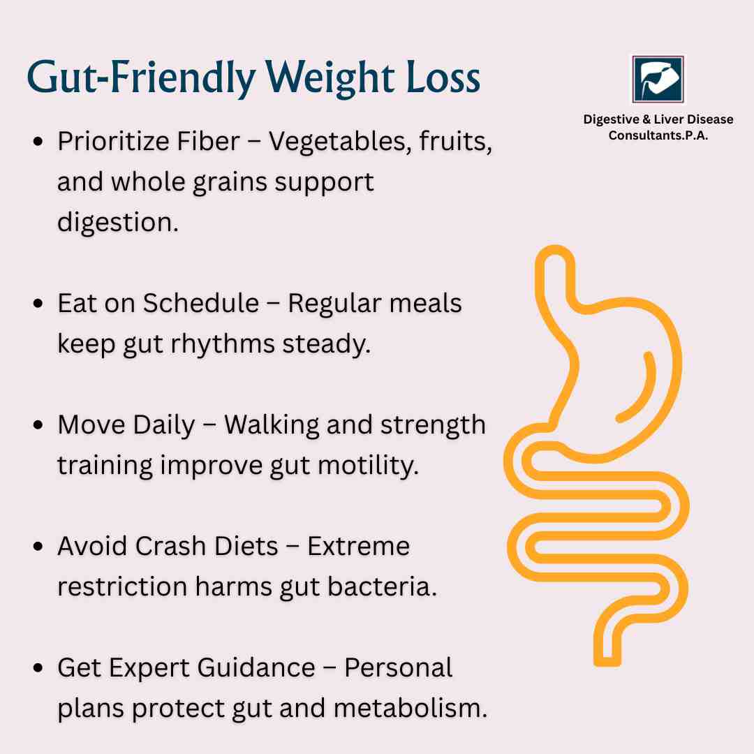 Instead of extreme restriction, aim for gradual weight loss. A slow, steady approach protects gut health and improves long term success.
