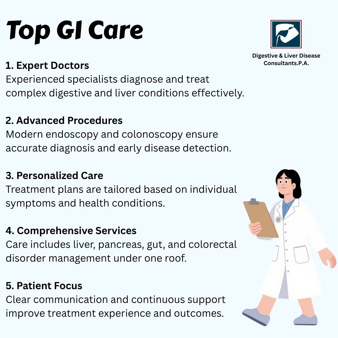 With advanced expertise, modern diagnostic tools, and patient-focused care, Digestive & Liver Disease Consultants, P.A. (DLDC) provides trusted gastroenterology services in North Houston. Whether it is routine screening or complex digestive disorders, patients receive comprehensive care designed for long-term health.
