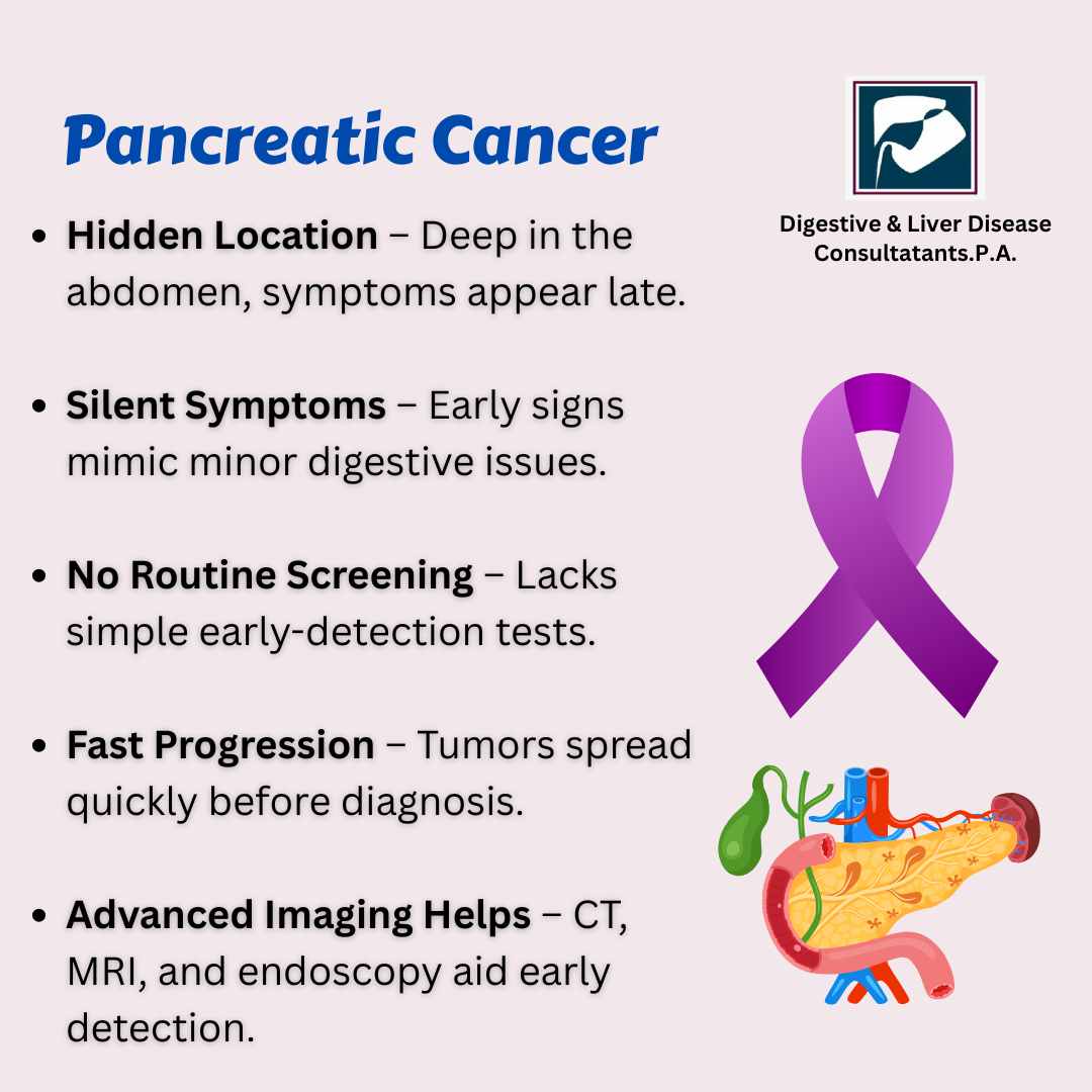 Understanding why pancreatic cancer is hard to detect, the risk factors, and early warning signs can empower patients to seek timely medical evaluation. At Digestive & Liver Disease Consultants, P.A., our gastroenterologists specialize in diagnosing and treating pancreatic and other digestive disorders with advanced techniques.