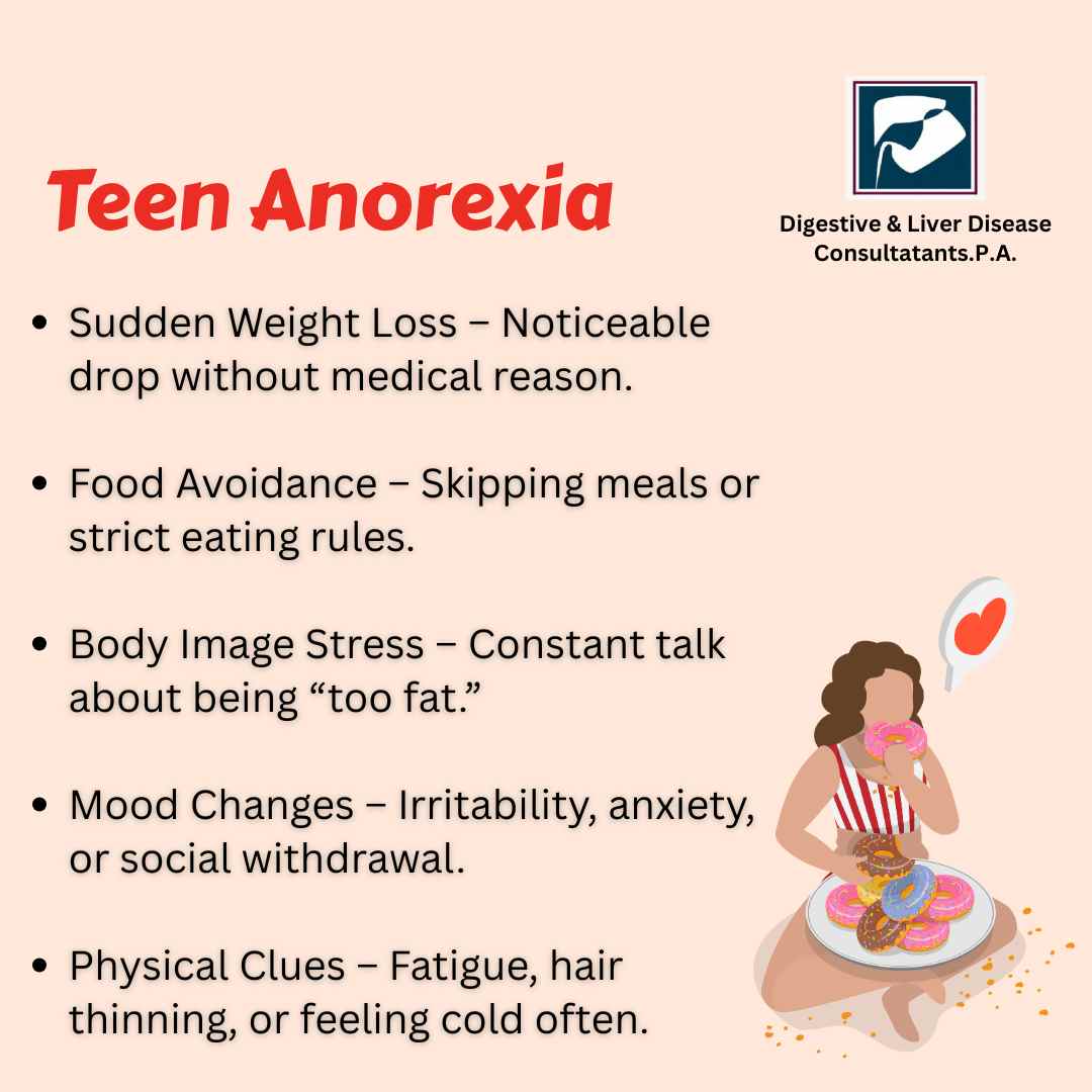 If your teen is struggling with an eating disorder or experiencing digestive symptoms like constipation, abdominal pain, or bloating, schedule an appointment with Digestive & Liver Disease Consultants, P.A. Our expert gastroenterologists are here to help restore healthy digestion and support long-term recovery.